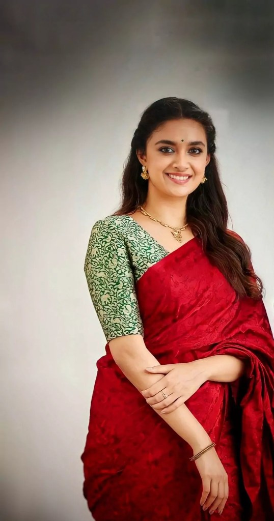 The contrast between the soft, sheer organza and the vibrant blue blouse is what makes this look so fresh and fashionable. The blouse, though ornate, is structured — balancing the fluidity of the saree. Paired with minimal jewelry and a sleek low bun, the styling keeps the focus exactly where it should be: on that stunning blouse design.