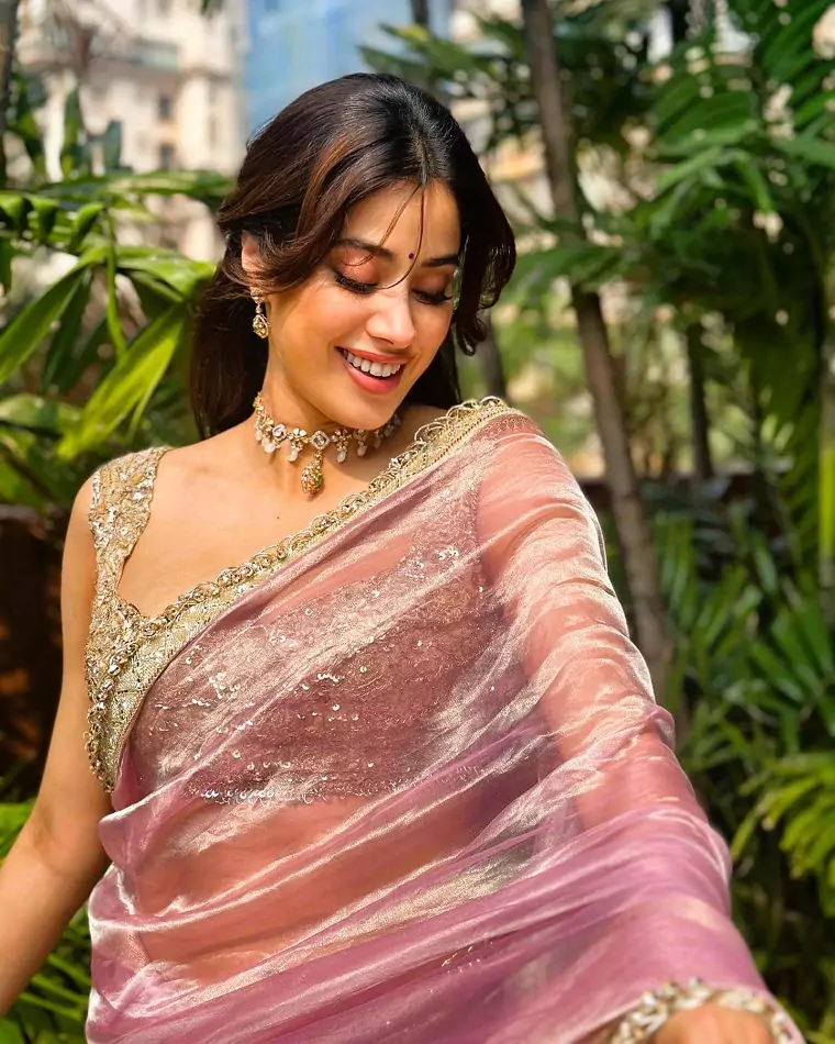 Janhvi Kapoor's festive appearance in a woven tissue saree has left fans and fashion enthusiasts in awe